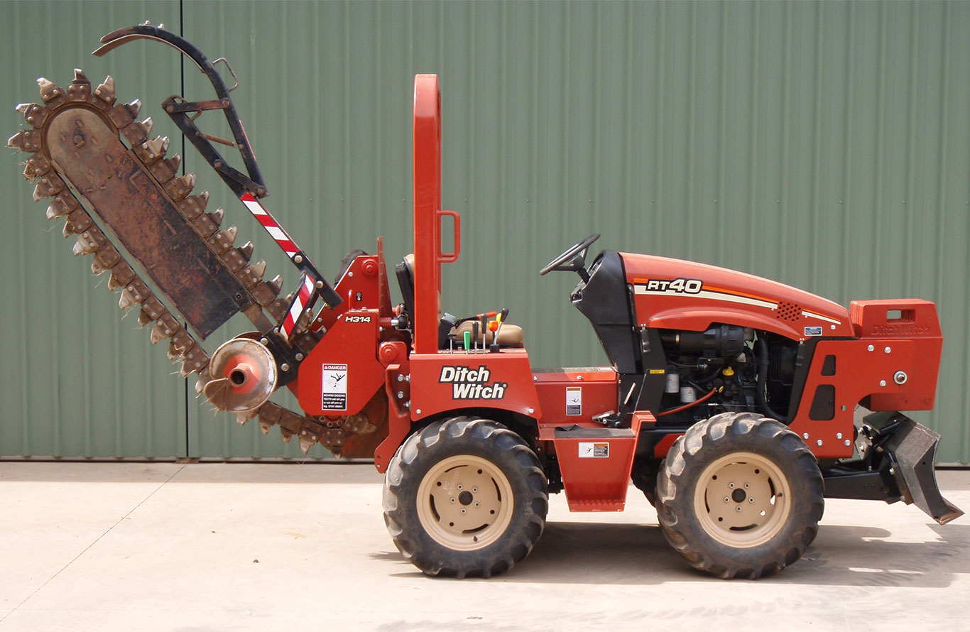 Our 40hp Ditch Witch trench diggers are popular for irrigation and electrical works. Faster than an excavator with a choice of various trench widths.